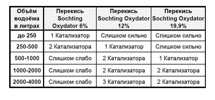 Таблиця комбінації розчину перекису Sochting Oxydator