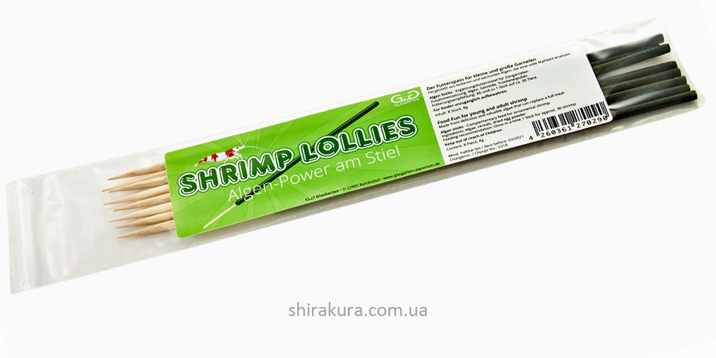 GlasGarten Shrimp Lollies - Algen Power - палички (льодяники) з нанесеною пастою з морських водоростей, злаків та сухого яєчного порошку. Додатковий корм для великих та маленьких креветок.