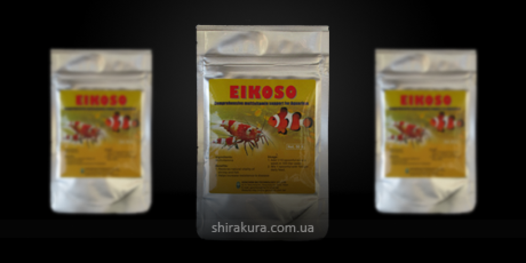Genchem EiKOSO - важлива вітамінна добавка для підростаючих креветок та риб. Знижує смертність молоді креветок та риб, збільшує темпи зростання, активність та опірність організму до хвороб.