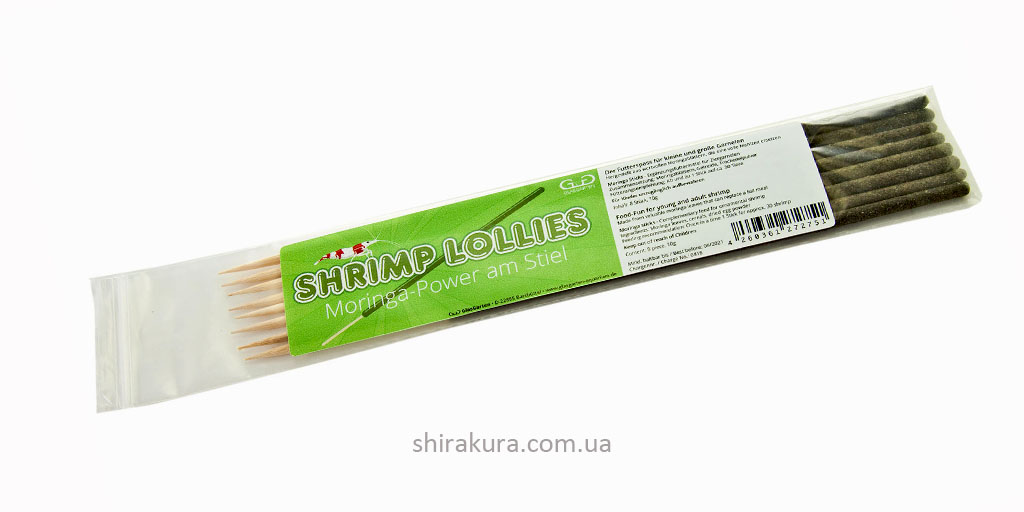 GlasGarten Shrimp Lollies - Moringa Power - палички (льодяники) з нанесеною пастою з листя моринга, злаків та сухого яєчного порошку. Додатковий корм для великих та маленьких креветок.