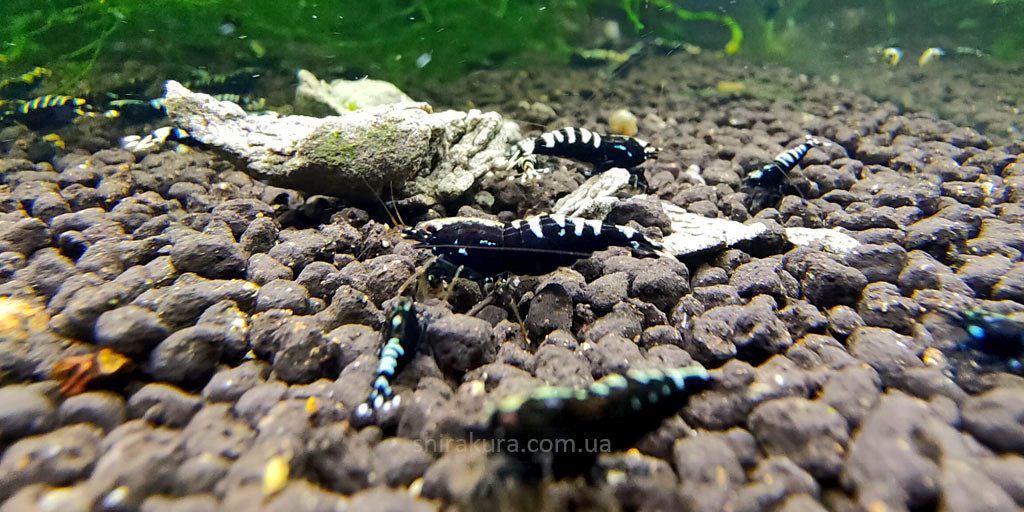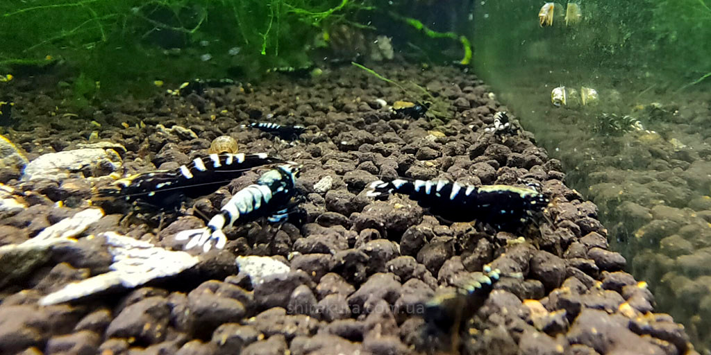 У нас ви можете придбати дуже гарний вид креветок власного розведення Taiwan Bee Black Pinto Zebra.