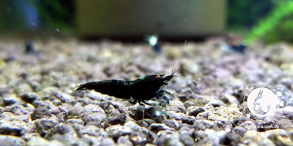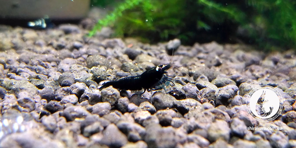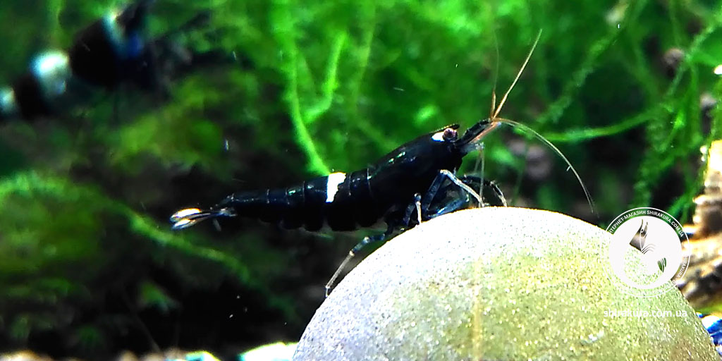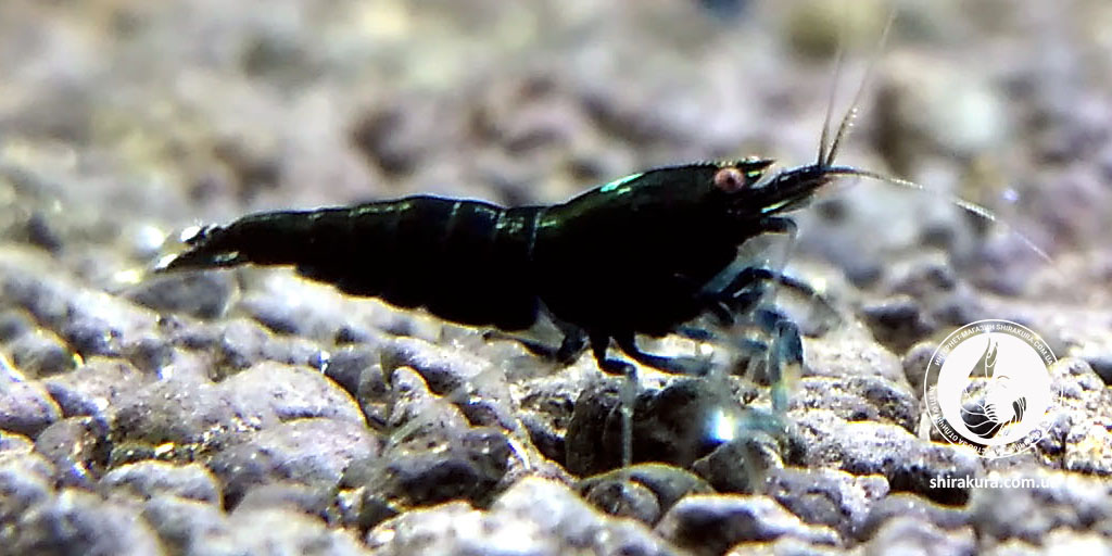 Ця селекційна форма креветок має насичений чорний колір панцира з невеликим білим вкрапленням на кінчику хвоста або на спині.