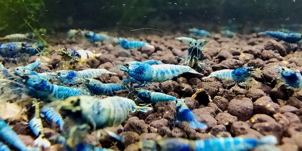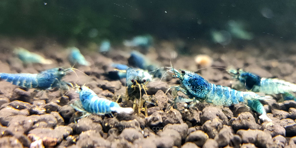 На-відміну від Taiwan Bee Deep Blue Bolt Shrimp, ці креветки мають ніжний голубий колір панцира.
