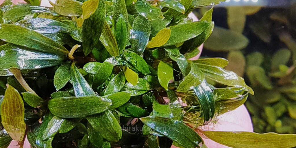 Колір листя варіюється від світло-зеленого до темно-зеленого, залежно від умов утримання. Ця рослина ідеально підходить для нано-акваріумів або як акцент на передньому плані більших акваріумів.