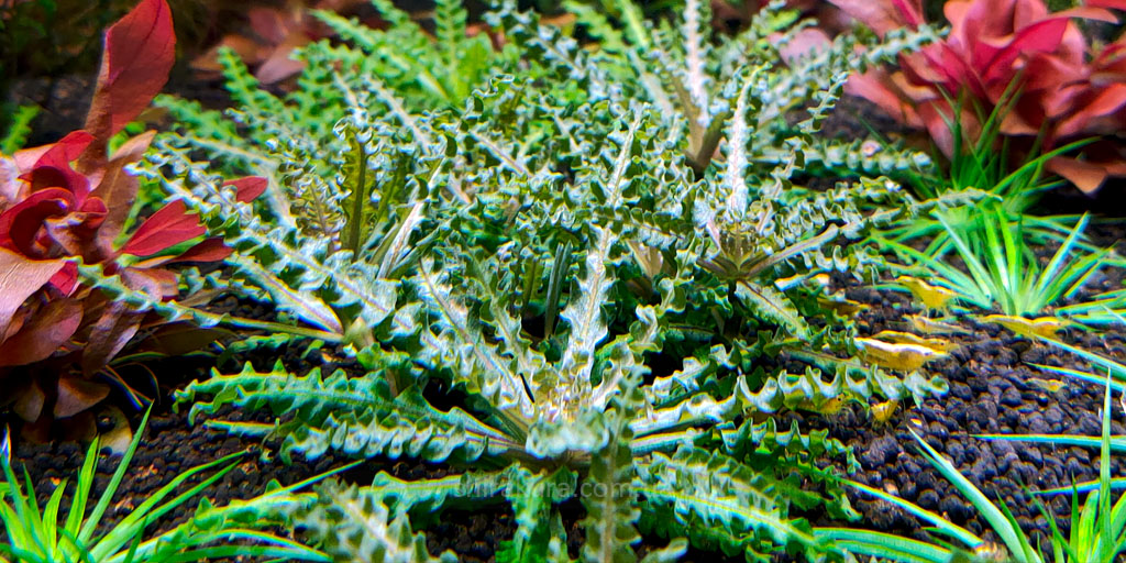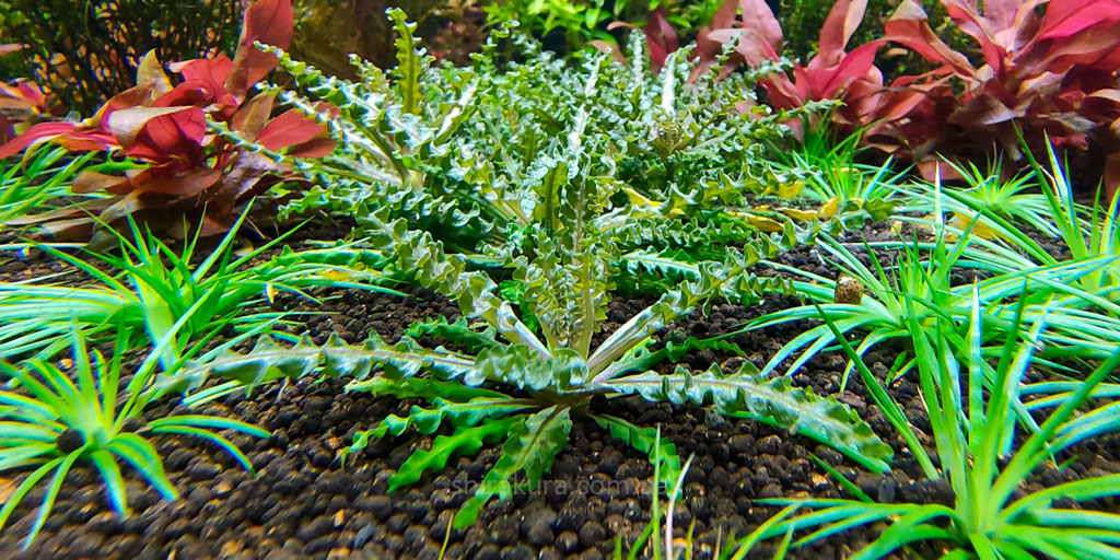 При високій інтенсивності освітлення, багатому поживними речовинами грунті, подачі СО2 і мікроелементів у воду – листя стає більш яскравим, помітніше проявляється також пофарбована центральна жилка листової пластинки.
