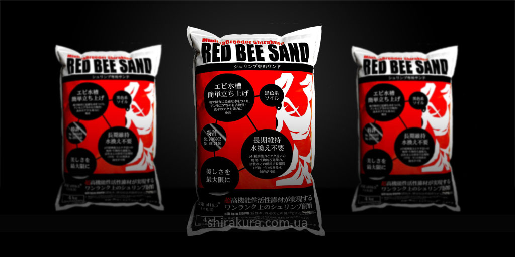 Shirakura Red Bee Sand - ґрунт (земляний субстрат) був спеціально розроблений Takayuki Shirakura для розведення креветок Бджіл (Bee Shrimp), Ред Кристал (Crystal Red) та Блек Кристал (Crystal Black). Даний ґрунт виробляється за спеціальною технологією та складається з різних видів обпалених ґрунтів.